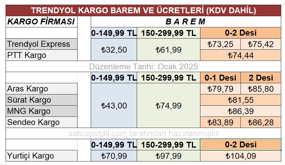 Trendyol Güncel Kargo Ücretleri ve Baremleri (2025)